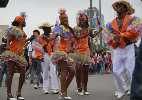| การแสดงของคณะนาฏศิลป์ Raices Profun จากคิวบาที่ได้นำเสนอบรรยากาศแห่งวัฒนธรรมพื้นเมืองที่ผสมผสานกับวัฒนธรรม อัฟริกา |