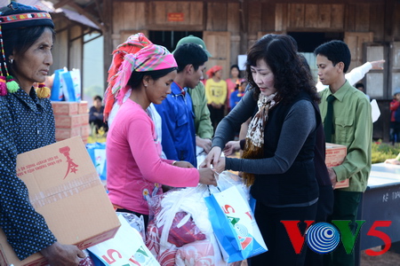 (VOVWorld)-คณะเจ้าหน้าที่และนักข่าวของส่วนกระจายเสียงต่างประเทศหรือวีโอวี๕ของสถานีวิทยุเวียดนามนำโดยท่าน ดว่านถิจุง ผู้อำนวยการวีโอวี๕ได้เดินทางไปเยือนและมอบสิ่งของช่วยเหลือให้แก่เจ้าหน้าที่ทหารและประชาชนที่อำเภอเหมื่องแญ้ ซึ่งเป็นท้องถิ่นทุรกันดารที่ยากจนที่สุดของจังหวัดเดียนเบียน ซึ่งเป็นส่วนหนึ่งในโครงการ“ความอบอุ่นในเขตชายแดน”ที่จัดโดยวีโอวี๕ในทุกปีแสดงความรักใคร่ น้ำใจไมตรีและช่วยแบ่งเบาความยากลำบากให้แก่ประชาชนในเขตชายแดนที่ยากจนต่างๆของประเทศ