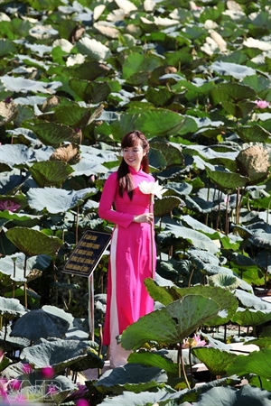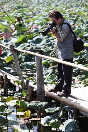 | นักท่องเที่ยว โดยเฉพาะเยาวชนพากันไปถ่ายรูปกับดอกบัว |