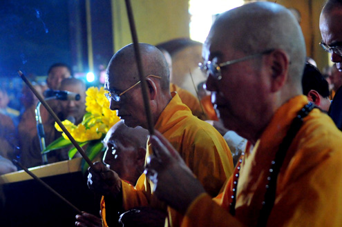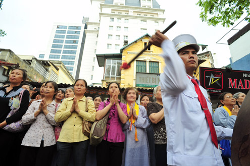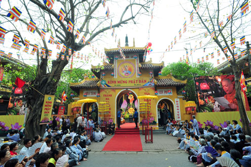 | ตั้งแต่เช้าตรู่ ชาวพุทธจำนวนมากในพื้นที่กรุงฮานอยก็ได้ไปร่วมงานวันวิสาขบูชาที่วัดQuan Su |