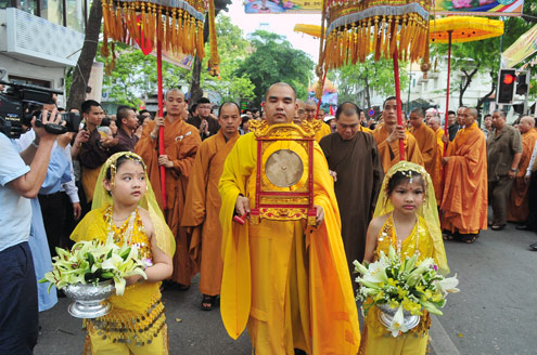 (VOVWorld)-เช้าวันที่๕เดือนนี้ ณ กรุงฮานอย พุทธสมาคมเวียดนามและพุทธสมาคมสาขากรุงฮานอยได้จัดมหาพิธีวันวิสาขบูชาพุทธ ศักราช๒๕๕๖โดยมีกิจกรรมต่างๆเช่น การสรงน้ำพระ การอ่านสาส์นวันวิสาขบูชา และพิธีปล่อยนกปล่อยปลา เป็นต้น
