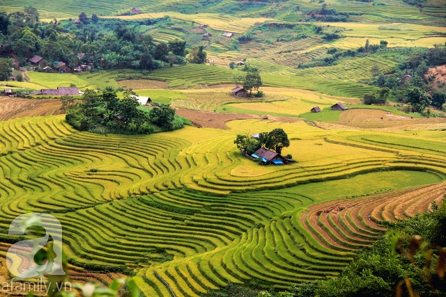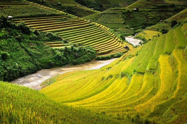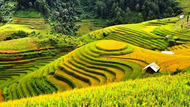 (VOVWorld)-ทุ่งนาขั้นบันไดในเขตเขาตะวันตกเฉียงเหนือมีมากมายหลายแห่ง เช่น ทุ่งนาหมู่กังจ๋ายที่จังหวัดเอียนบ๊าย ทุ่งนาหว่างซูฝี่ ทุ่งนาซี้เหมิ่นที่จังหวัดห่ายาง ทุ่งนาซาปา ทุ่งนาบ๊าดซาดที่จังหวัดหล่าวกาย เป็นต้น แต่สวยที่สุดคือทุ่งนาหมู่กังจ๋าย ทุ่งนาขั้นบันไดหมู่กังจ๋ายได้รับการรับรองเป็นสถานที่ท่องเที่ยวแห่งชาติเมื่อปี ๒๐๐๗จากกระทรวงวัฒนธรรม กีฬาและการท่องเที่ยวเวียดนาม เมื่อฤดูใบไม้ร่วงเวียนมา ภาพตำบลเขตเขาแห่งนี้จะมีความสวยงามที่สุดในปีเนื่องจากถูกปูด้วยพรมสีเหลืองอร่ามของนาข้าวกำลังเข้าฤดูเก็บเกี่ยว ดังนั้นถ้าหากใครมีโอกาสมาเที่ยวเอียนบ๋ายช่วงนี้ก็ต้องแวะเส้นทางหมู่กังจ๋ายเพื่อชมทัศนียภาพที่งดงามเหมือนในฝันของธรรมชาติในเขตเขาแห่งนี้