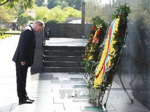 | ประธานาธิบดีรัสเซียได้ไปวางพวงมาลาและเคารพศพประธานโฮจิมินห์ ณ หอเก็บศพ |