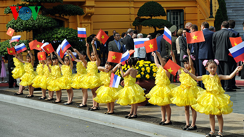 (VOVWorld)-ประธานาธิบดีรัสเซีย วลาดีเมียร์ ปูติน ได้เริ่มการเยือนเวียดนามในวันที่๑๒พฤศจิกายนตามคำเชิญของประธานประเทศเวียดนามท่านเจืองเติ้นซาง ซึ่งเป็นการเยือนเวียดนามครั้งที่3โดยมีการเยือนสองครั้งในฐานะประธานาธิบดีรัสเซีย ซึ่งไม่เพียงแต่สะท้อนให้เห็นถึงความไว้วางใจทางการเมืองในระดับสูงของทั้ง สองฝ่ายเท่านั้นหากยังมีส่วนร่วมเพิ่มความลึกซึ้งให้แก่ความสัมพันธ์หุ้นส่วนยุทธศาสตร์และความร่วมมือในทุกด้านระหว่างสองประเทศในระยะแห่งการพัฒนาใหม่อีกด้วย