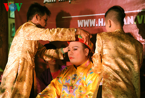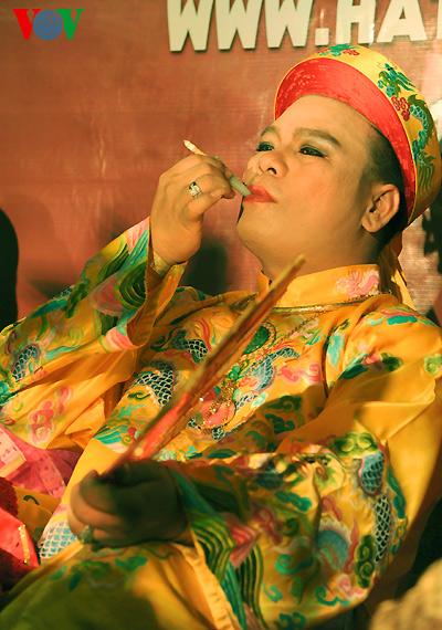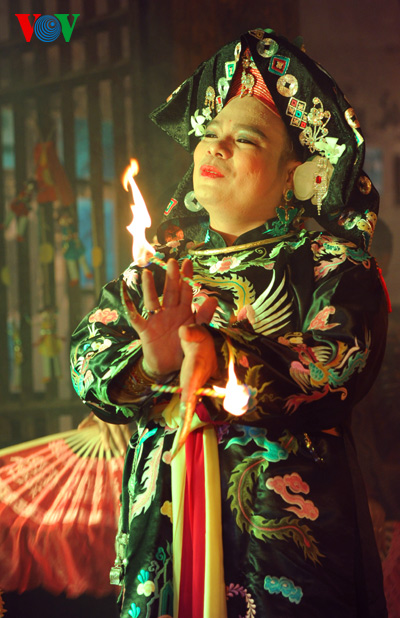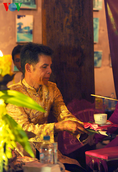 | พิธีเข้าทรงเป็นพิธีที่มีการเล่นดนตรี ร้องเพลงและฟ้อนรำด้วย เพลงที่ร้องในพิธีเข้าทรงของชาวเวียดคือ เพลง ChauVan พิธีเข้าทรงมักจะจัดขึ้นที่วัดในบรรยากาศที่เงียบสงบ |