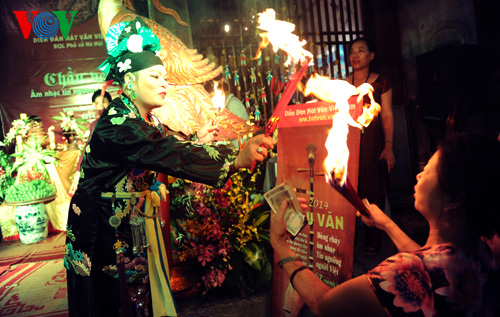 (VOVworld) - คํ่าวันที่ 4 ตุลาคม ที่ ศาลเจ้ากิมเงินในกรุงฮานอย ฟอรั่มร้องเพลง ChauVan เวียดนามได้ร่วมกับศูนย์พัฒนาดนตรีและการแสดงศิลปะเวียดนามจัดการพบปะสังสรรค์ในหัวข้อ "เพลง เจ่าวัน ( ChauVan )ในดนตรีและความเลื่อมใสศรัทธาของชาวเวียด" ซึ่งเป็นหนึ่งในกิจกรรมฉลองครบรอบ 60 ปีการปลดปล่อยกรุงฮานอย ซึ่งตรงกับวันที่ 10 ตุลาคม