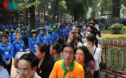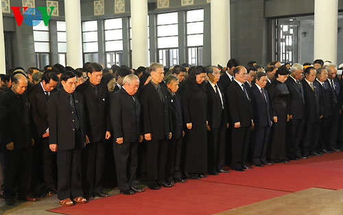 (VOVWorld)-พิธีไว้อาลัยพลเอกหวอเหงียนย้าปได้เริ่มขึ้นตั้งแต่เวลา๗.๓๐นวันที่๑๒ตุลาคมซึ่งนอกจากคณะผู้แทนของพรรค รัฐ รัฐสภาและรัฐบาลแล้วยังมีคณะทูตานุทูต คณะผู้แทนองค์กรต่างประเทศและประชาชนจำนวนมากได้มาร่วมพิธีที่อาคารจัดพิธีศพแห่งชาติ ณ เลขที่๕ ถ.เจิ่นแท้งตง เพื่อแสดงความเศร้าสลดใจและความเคารพรักอย่างสุดซึ้งต่อพลเอก หวอเงียนย้าป ผู้บัญชาการทหารที่ปรีชามารถของกองทัพเวียดนาม