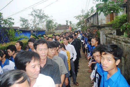 ที่จังหวัดกว๋างบิ่ง ซึ่งเป็นบ้านเกิดของพลเอกหวอเงียนย๊าป ถึงแม้ฝนได้ตกลงมาอย่างหนักแต่ประชาชนจำนวนมากยังคงได้เดินทางไปร่วมพิธีไว้อาลัยพลเอกหวอเงียนย๊าป