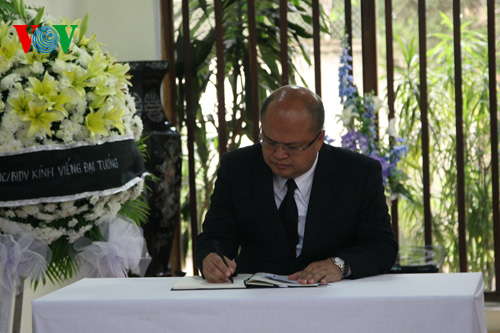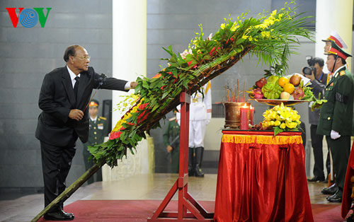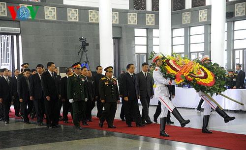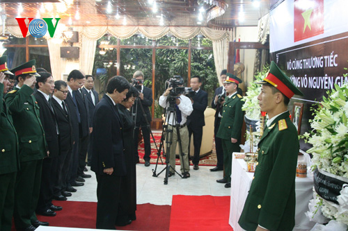(VOVworld)- ที่กรุงฮานอยหลังจากที่คณะผู้แทนของพรรค รัฐ รัฐสภา รัฐบาลและแนวร่วมปิตุภูมิเวียดนาม รวมทั้งหน่วยงานส่วนกลางต่างๆได้เข้าคารวะศพพลเอกหวอเงวียนย้าป คณะผู้แทนต่างประเทศก็เริ่มเข้าร่วมพิธีไว้อาลัยพลเอกหวอเงวียนย้าป