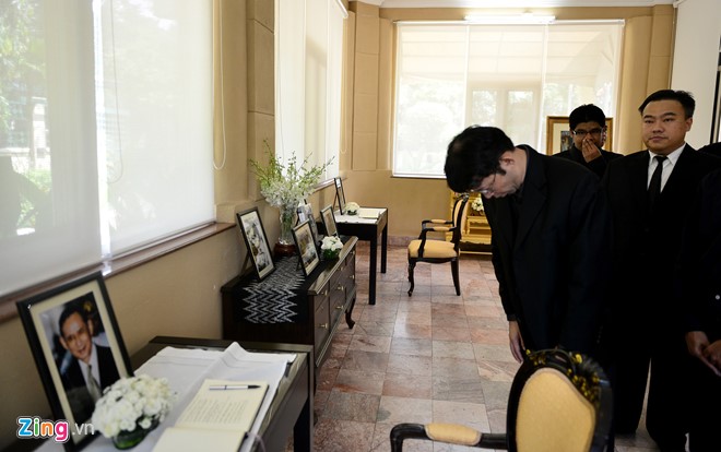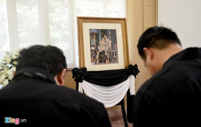 ![]() ประชาชนชาวไทยและชาวเวียดนามนับร้อยคนได้เข้าแถวด้านหน้าสถานทูตไทยประจำกรุงฮานอยรอเข้าไว้อาลัยพระบาทสมเด็จพระเจ้าอยู่หัวฯ