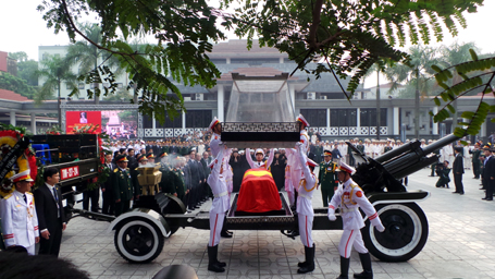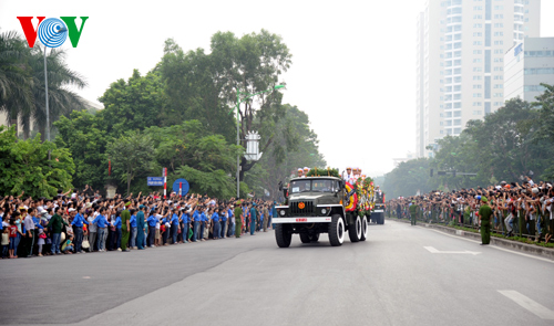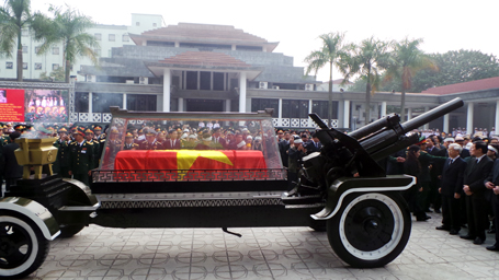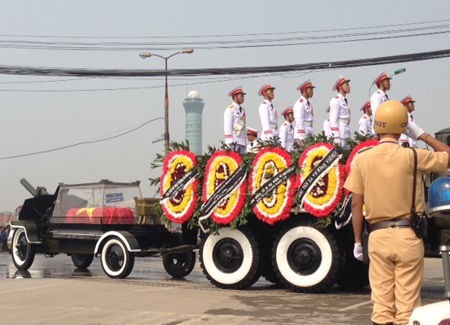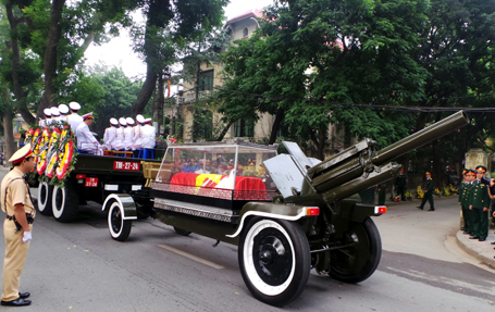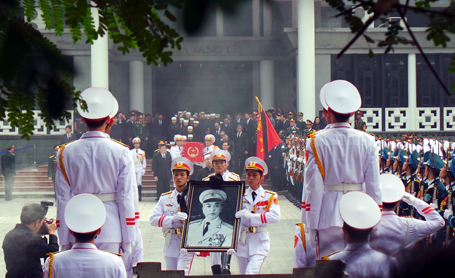 ![]() บรรดาผูนำพรรคและรัฐไปอำลาครั้งสุดท้ายพลเอกหวอเงียนย๊าป |