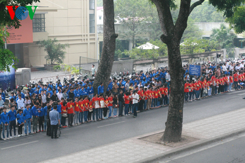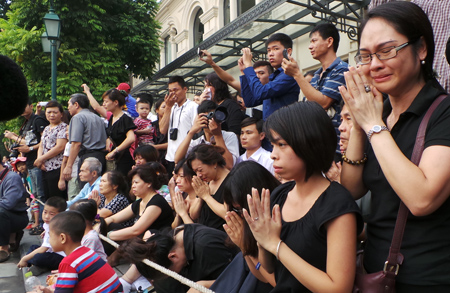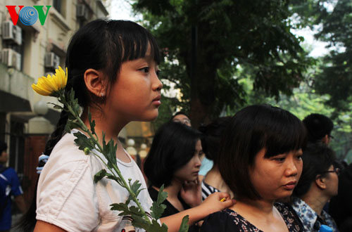 ตั้งแต่เช้าตรู่ ประชาชนจำนวนมากได้รวมตัวกันในบริเวณโดยรอบหอพิธีศพแห่งชาติเลข๕ ถ.เจิ่นแท้งตงเพื่อร่วมพิธี |