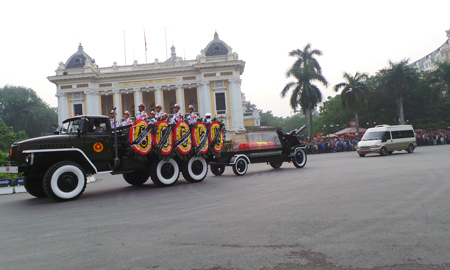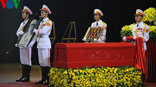 ก่อนหน้านั้น เวลา๗.นวันที่๑๓ตุลาคมนี้ พิธีศพท่านพลเอกหวอเงวียนย้าป อดีตสมาชิกกรมการเมือง อดีตเลขาธิการกองทัพส่วนกลาง อดีตรองนายกฯ อดีตรัฐมนตรีกระทรวงกลาโหม ผู้บัญชาการใหญ่กองทัพประชาชนเวียดนามได้เริ่มขึ้นอย่างยิ่งใหญ่และสมเกียรติที่หอพิธีศพแห่งชาติในกรุงฮานอย โดยมีการเข้าร่วมของบรรดาผู้นำและอดีตผู้นำพรรค รัฐ รัฐสภา รัฐบาล กองทัพ และคณะผู้แทนคณะทูตานุทูต กระทรวงหน่วยงานส่วนกลาง องค์การมวลชนและตัวแทนท้องถิ่นต่างๆพร้อมครอบครัวของท่านพลเอกหวอเงวียนย้าป และประชาชนทุกหมู่เหล่า
