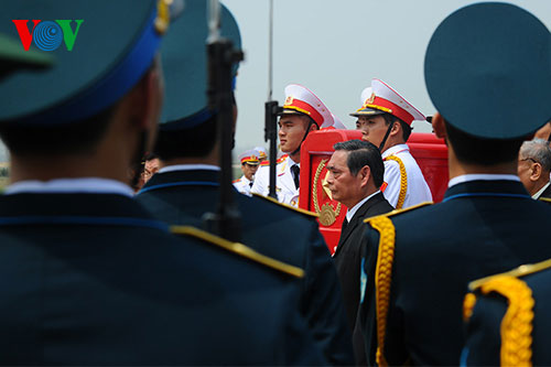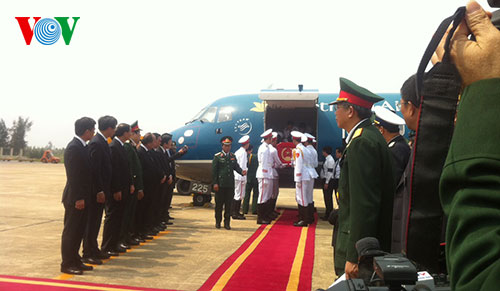 (VOVWorld)-เมื่อ๑๑น.๕๕นาที เครื่องบินATR72-VN103ที่นำศพท่านพลเอกหวอเงียนย๊าปได้ลงจอด ณ สนามบินด่งเหยจังหวัด กว๋างบิ่ง ซึ่งเป็นบ้านเกิดของท่าน
