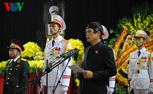| ท่านเหงวียนฟู๊จ๋องเลขาธิการใหญ่พรรคคอมมิวนิสต์เวียดนามอ่านสุนทรพจน์ไว้อาลัย |