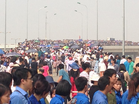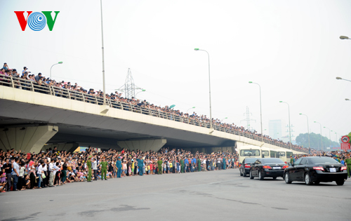 | ประชาชนจำนวนมากได้รวมตัวกันในบริเวณโดยรอบสนามบินโหนยบ่ายเพื่ออำลาพลเอกหวอเงียนย๊าป |