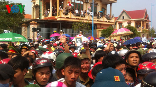 | ชาวกว๋างบิ่งจำนวนมากได้รวมตัวกันเพื่ออำลาพลเอกหวอเงียนย๊าป |