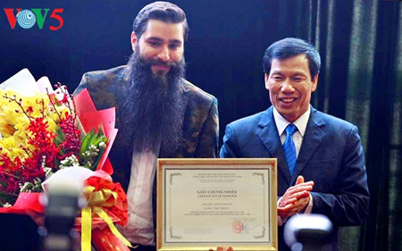![]() นายเหงียนหงอกเถี่ยน รัฐมนตรีว่าการกระทรวงวัฒนธรรม การกีฬาและการท่องเที่ยวเวียดนามมอบหนังสือแต่งตั้งให้นาย Jordan Vogt- Robert