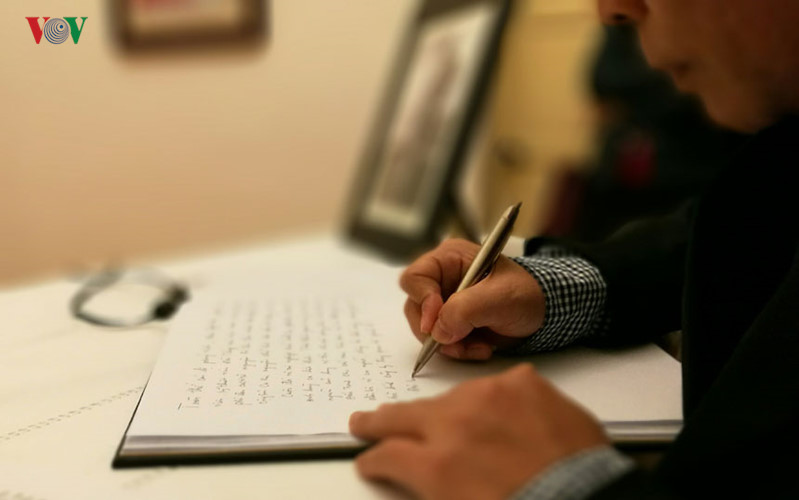 ![]() ในสมุดไว้อาลัย รองประธานสถานีวิทยุเวียดนามได้เขียนว่า "ในนามเจ้าหน้าที่ผู้สื่อข่าวของวิทยุเวียดนาม ขอแสดงความเสียใจอย่างสุดซึ้งกับประชาชนคิวบาพี่น้องต่อความสูญเสียที่ยิ่งใหญ่นี้ สถานีวิทยุเวีดยนามขอจดจำการช่วยเหลือของท่านฟิเดล คาสโตรและประชาชนคิวบาพี่น้องเพื่อการพัฒนาของสถานีในทุกด้านรวมทั้งการสนับสนุนการกระจายเสียงของวิทยุเวียดนามในคิวบา อันเป็นการมีส่วนร่วมช่วยให้วิทยุเวียดนามสามารถปฏิบัติหน้าที่ที่ได้รับมอบหมายในช่วงทำสงครามต่อสู้เพื่อช่วงชิงเอกราชเสรีภาพและสร้างสรรค์ประเทศเวียดนาม"