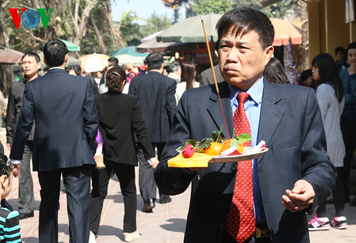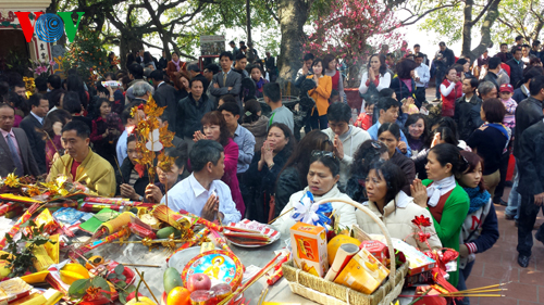 (VOVWorld)-ในวันขึ้นปีใหม่ประเพณี ชาวเวียดนามมักจะเดินทางไปทำบุญวัดเพื่อขอพรให้ครอบครัวมีสุขภาพแข็งแรงและความสงบสุข ขอให้ทุกคนมีชีวิตความเป็นอยู่ให้มั่นคงและลูกหลานประสบความสำเร็จในหน้าที่การงาน นี่ถือเป็นเอกลักษณ์ในชีวิตจิตใจของคนเวียดนาม