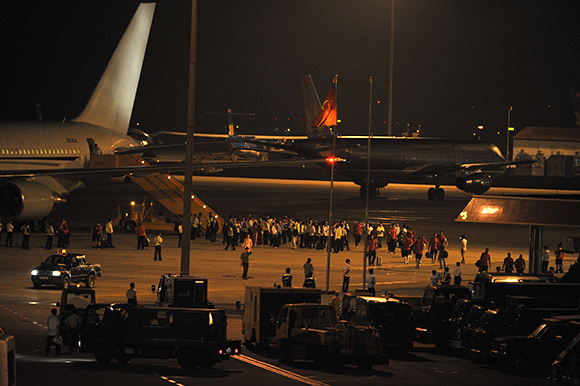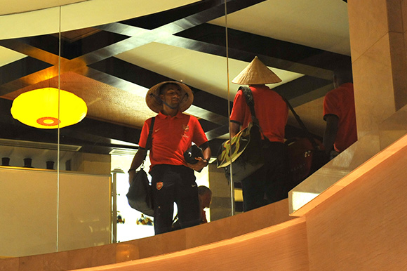 | นักเตะของสโมสรอาร์เซน่อลที่สนามบินนานาชาติ Noi Bai |