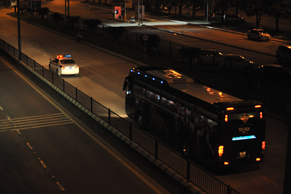 | นักเตะของสโมสรอาร์เซน่อลขึ้นรถไปโรงแรมIntercontinental |