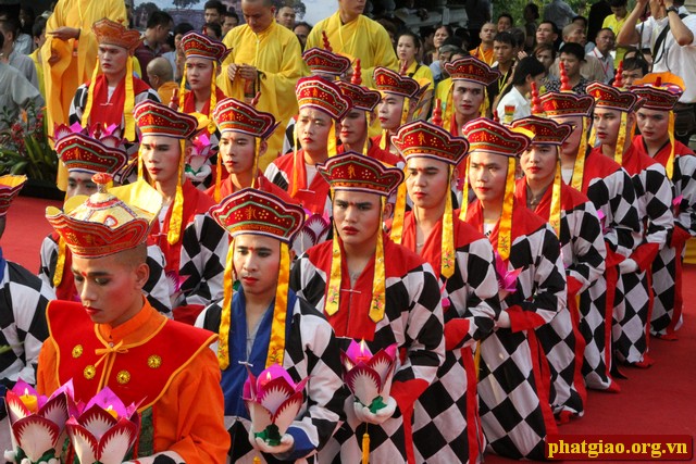 | พิธีบวงสรวงแบบพุทธศาสนาของทั้งภาคเหนือ ภาคกลางและภาคใต้เวียดนามได้รับการจัดขึ้น ณ วัดบ๊ายดิงห์ จังหวัดนิงห์บิ่งห์ |