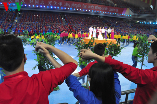 (VOVworld) – งานมหกรรมเยาวชนเวียดนาม – จีนครั้งที่ 2 ได้มีขึ้นในขณะที่ความสัมพันธ์มิตรภาพและความร่วมมือระหว่างสองประเทศกำลังมีก้าวพัฒนาใหม่ ซึ่งเป็นโอกาสที่ดีเพื่อให้เยาวชนทั้งสองประเทศสืบสาน มีส่วนร่วมเสริมสร้างและขยายความสัมพันธ์ระหว่างจีนกับเวียดนาม เคียงบ่าเคียงไหล่สร้างสรรค์อนาคตที่สดใสให้แก่ทั้งสองประชาชาติ