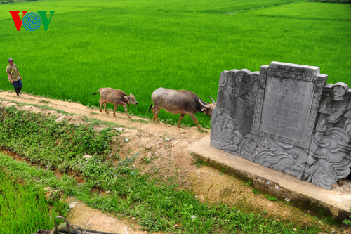 | ศิลาจารึกใกล้ซากรถถังเกี่ยวกับชัยชนะของกองทัพเวียดนามในการรบที่สนามบินเหมื่องแทงในระหว่างวันที่ 24 - 29 เมษายน ปี 1954 |