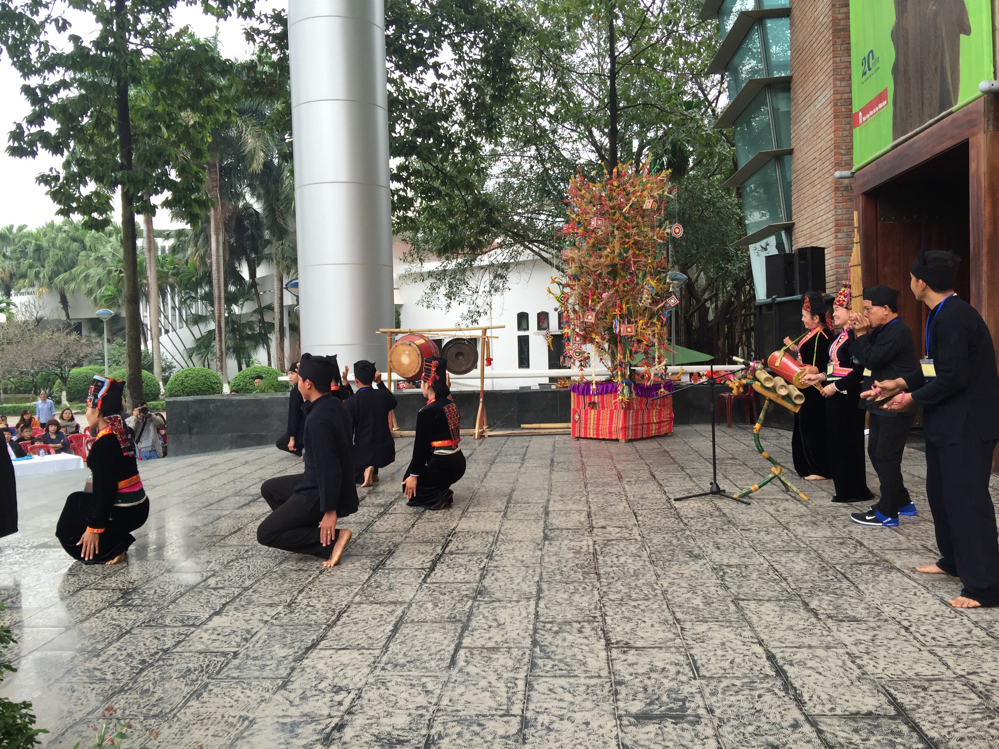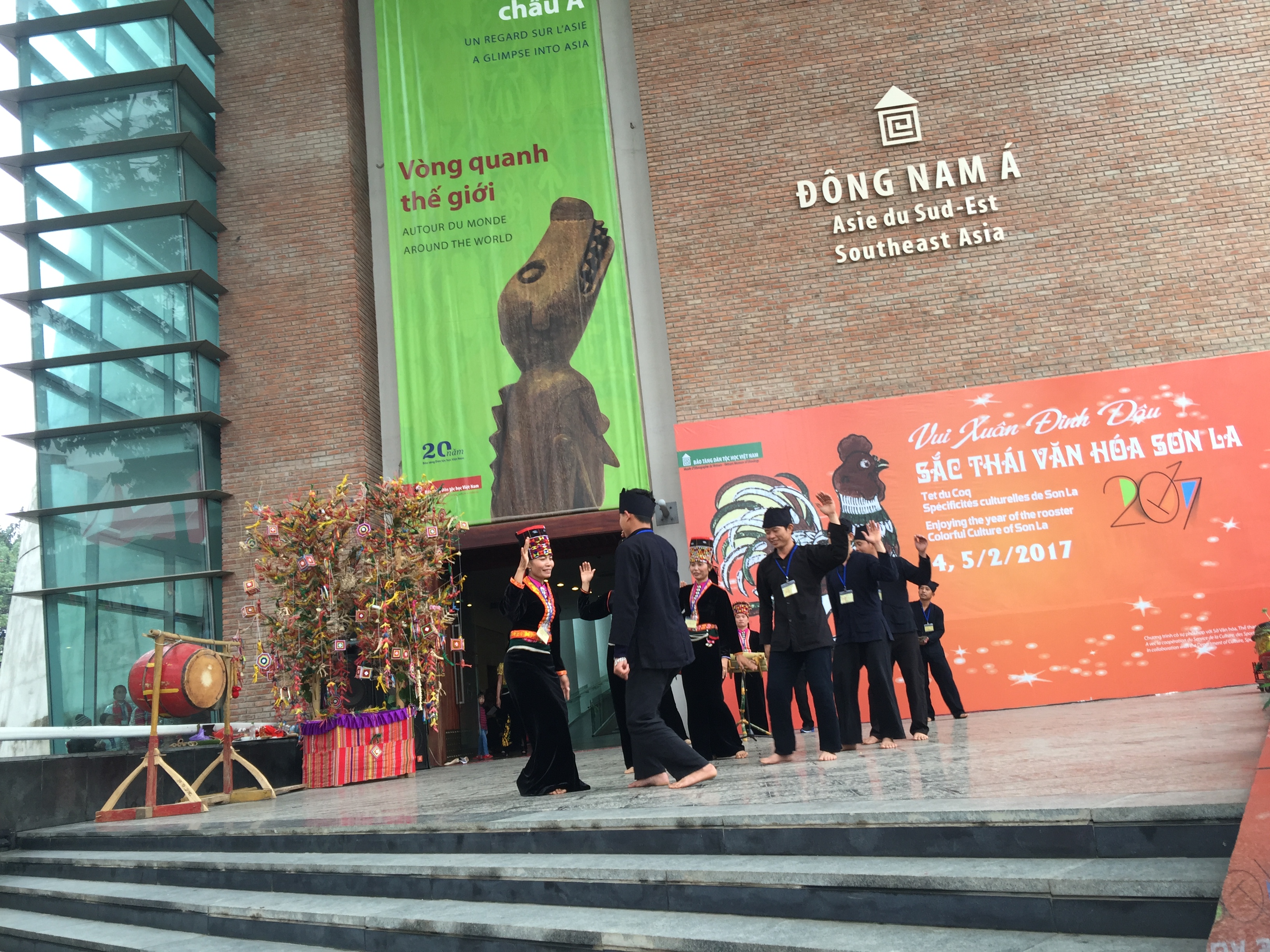 (VOVworld) – งาน “ วสันตฤดูปีระกา 2017 – เอกลักษณ์วัฒนธรรมเซินลา” ได้มีขึ้น ณ พิพิธภัณฑ์ชาติพันธุ์เวียดนามในระหว่างวันที่ 4-5 กุมภาพันธ์ โดยมีการแนะนำวัฒนธรรมที่เป็นเอกลักษณ์ของเขตตะวันตกเฉียงเหนือ เช่น การรำ “แส่วช้า” ของชนกลุ่มน้อยเผ่าไท การร้องเพลง “เติมตังบู”ของชนกลุ่มน้อยเผ่าขมุ การร้องเพลงโต้ตอบของชนกลุ่มน้อยเผ่าไท ม้งและขมุ การละเล่นพื้นบ้านต่างๆ เช่น การโล้ชิงช้า การเดินขาหยั่ง เป็นต้น นอกจากนี้ ผู้ที่มาร่วมงานยังมีโอกาสขอตัวอักษรมงคลและลองพิมพ์ภาพพื้นเมืองดงโห่ อีกด้วย