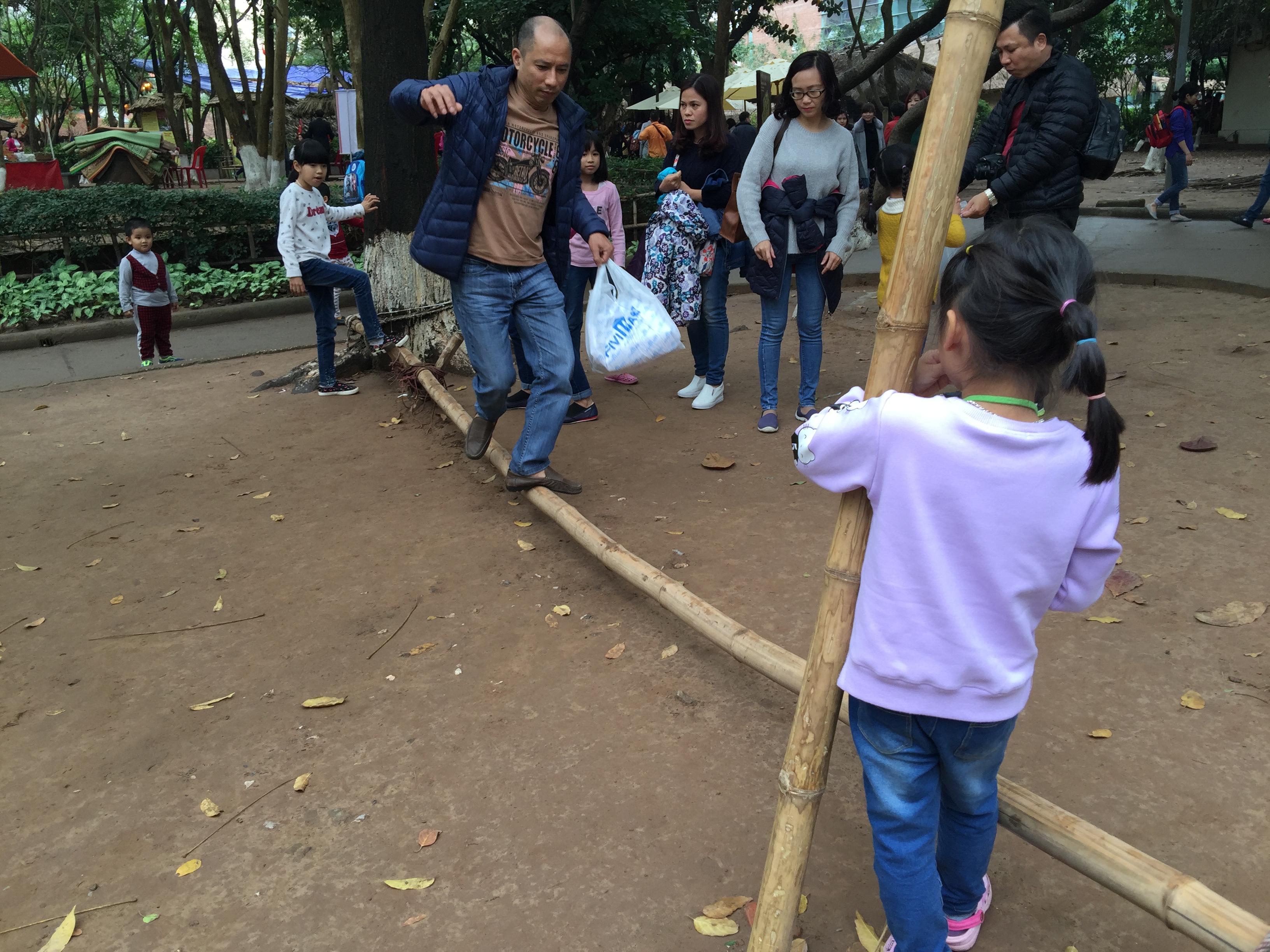 การข้ามสะพาน ลิง ที่มักจะพบเห็นในเขตที่ราบลุ่มแม่น้ำโขง