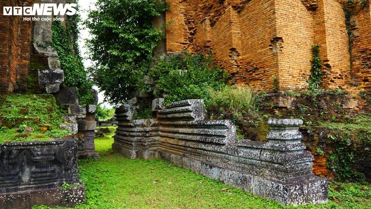 ความแตกต่างของปราสาทแต่ละหลังสะท้อนผ่านงานประติมากรรมที่แกะสลักอย่างประณีตโดยช่างฝีมือจามในอดีต หลังจากผ่านกาลเวลาหลายพันปี ฐานหินใต้ประตูยังคงสภาพสมบูรณ์ |