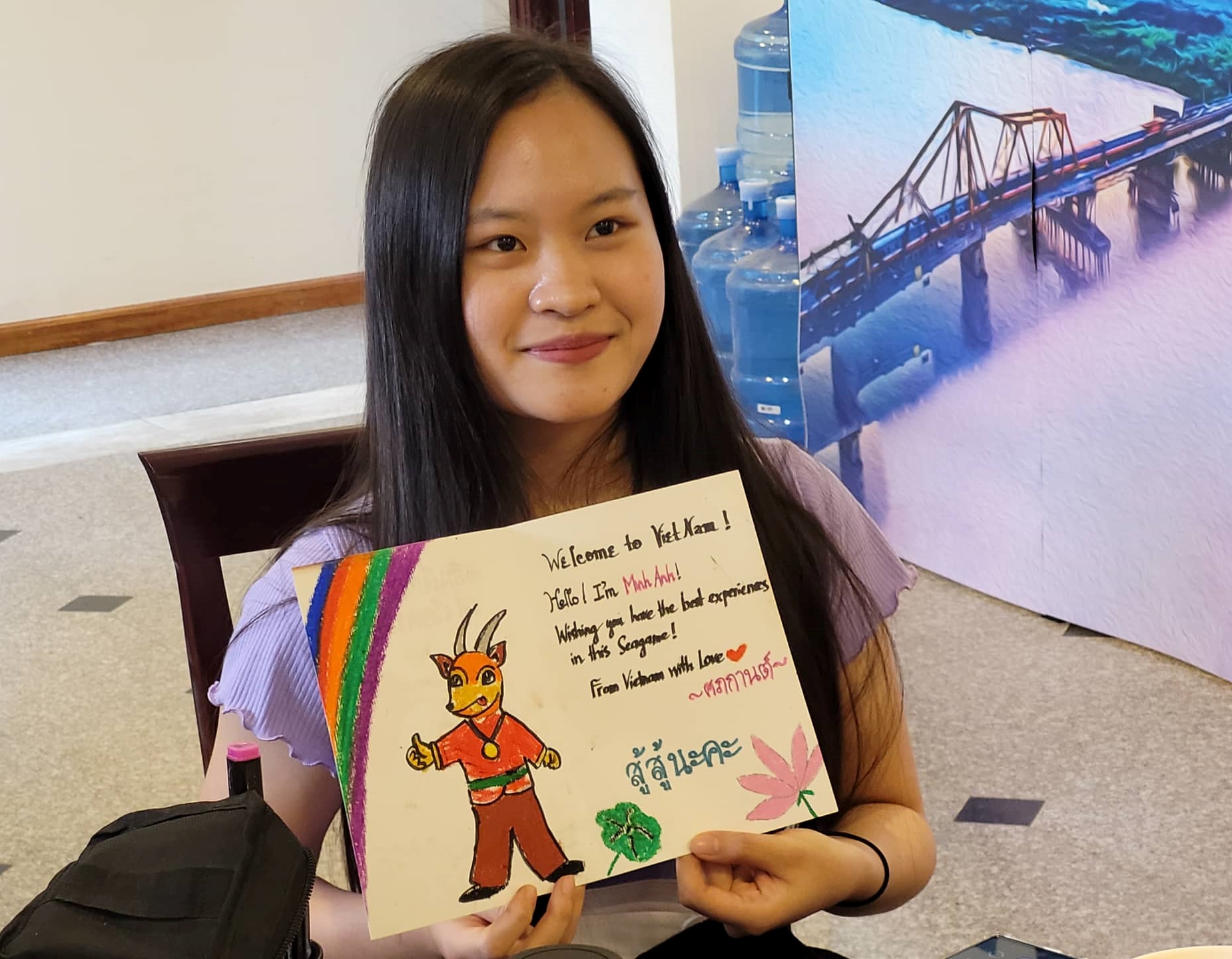 ภายในกรอบกิจกรรมขานรับการแข่งขันกีฬาซีเกมส์ครั้งที่ 31 ณ เวียดนาม สถานเอกอัครราชทูตไทย ณ กรุงฮานอย ได้จัดกิจกรรม “รวมพลังใจพี่น้องไทย-เวียดนาม สานสัมพันธ์ซีเกมส์” ด้วยการร่วมทำป้ายต้อนรับ ส่งความปรารถนาดี และการ์ดอวยพรให้ทัพนักกีฬาและชาวไทยในการแข่งขันกีฬาซีเกมส์ ครั้งที่ 31 ที่จะเริ่มขึ้นในเดือนพฤษภาคมนี้ โดยมีนางสาวมรกต เจนมธุกร อุปทูต ร่วมด้วยข้าราชการทีมประเทศไทย เจ้าหน้าที่สถานเอกอัครราชทูตฯ และครอบครัว ชุมชนไทย ชาวเหวียดเกี่ยวที่เคยอาศัยอยู่ในประเทศไทยและสปป.ลาว นักศึกษาชาวเวียดนามที่ศึกษาและสนใจเกี่ยวกับประเทศไทย รวมถึงชมรมมวยไทยแห่งมหาวิทยาลัย FPT กว่า 100 คนเข้าร่วมกิจกรรมอย่างอุ่นหนาฝาคั่ง ตามมาตรการป้องกันและควบคุมโรคโควิด-19