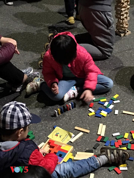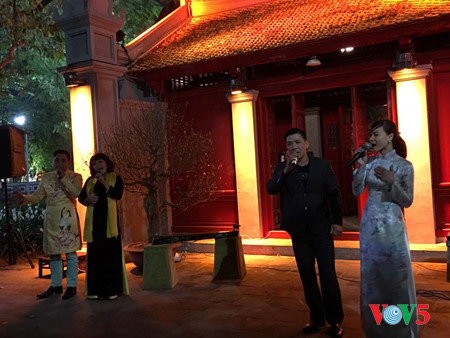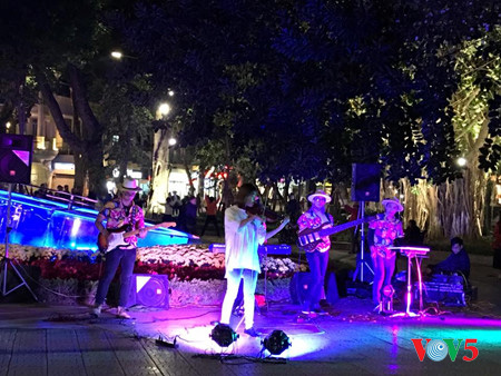![]() ในบริเวณด้านหน้าศูนย์การค้าจ่างเตี่ยนพลาซ่า มีการแสดงดนตรีเกี่ยวกับฮานอยของ นักศึกษาจากวิทยาลัยศิลปะฮานอย