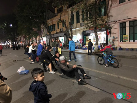 ![]() ในถนนคนเดินบริเวณรอบทะเลสาบหว่านเกี๊ยม ยังมีการจัดการละเล่นพื้นเมืองต่างๆ เช่น การชักเย่อ