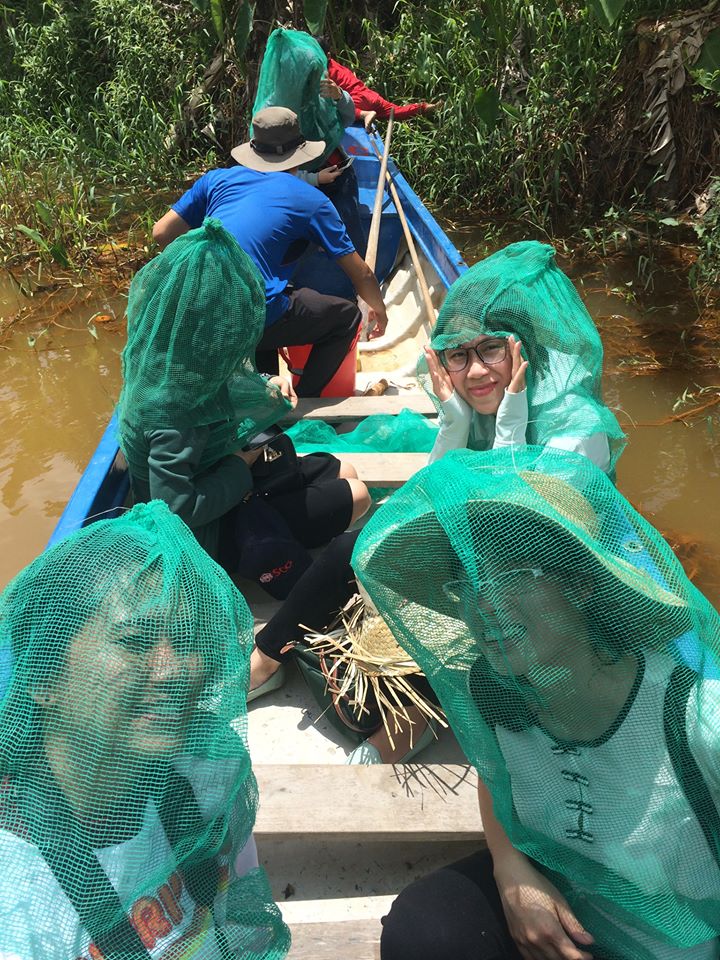 นั่งเรือประมาณ 15 นาทีเพื่อข้ามคลองที่มีระดับน้ำสูงกว่าหัวคนเล็กน้อยก็ถึงพื้นที่เลี้ยงผึ้งแบบธรรมชาติของครอบครัวคุณฝามยวีแคง ก่อนที่จะขึ้นฝั่ง คุณแคงได้จุดมัดฟางเพื่อใช้ควันไล่ผึ้ง ทุกคนเดินตามคุณแคง ที่รังผึ้งบนกิ่งไม้มีผึ้งกำลังบินเสียงหึ่งๆ น่ากลัวมาก แต่คุณแคงยังถือถังน้ำและมีดเล็กปีนขึ้นต้นไม้อย่างรวดเร็ว ใช้ควันจากฟางไล่ผึ้งแล้วตัดรังผึ้งวางในถังแล้วปีนลงมา การเก็บน้ำผึ้งใช้เวลาทั้งหมดไม่ถึง 5 นาทีแล้วทุกคนก็กลับลงเรือเพื่อไม่ให้ผึ้งต่อย คุณแคงบอกว่า ชาวบ้านที่นี่อยู่ร่วมกับธรรมชาติ โดยมีรายได้มาจากอาชีพเลี้ยงผึ้งเป็นส่วนใหญ่ “เมื่อดอกเสม็ดบานสะพรั่ง น้ำหวานจะเยอะมาก ทำให้ผึ้งบินมาดูดน้ำหวานเยอะ ทุกๆ 10 วันจะสามารถเก็บน้ำผึ้งได้ประมาณ 100-200 ลิตร ขายได้ลิตรละ 3 แสนด่ง รายได้แต่ละเดือนอยู่ที่ประมาณ 60-70 ล้านด่ง แต่บางเดือนจะไม่มีรายได้เพราะดอกเสม็ดไม่มีน้ำหวาน”