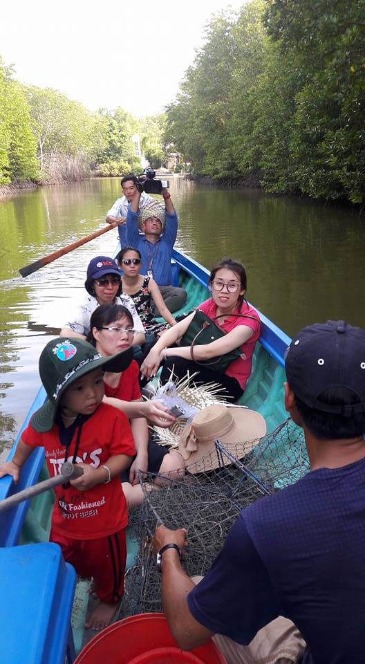 เวลา 10 โมงเช้า หลังจากเก็บหอยไปสักพัก ดีจันดาก็ขึ้นเรือกลับบ้านของคุณเจิ่นวันฟอง ภรรยาของคุณฟองกำลังรอเธอกับคณะโดยได้เตรียมสบู่ไว้ที่อ่างล้างมือ นอกจากดีจันดา ในคณะยังมีอีก 5 คน คุณฟองเผยว่า ในเขตริมฝั่งทะเลนี้ มีครอบครัวที่ประกอบอาชีพให้บริการการท่องเที่ยวชุมชนทั้งหมด 6 ครอบครัว โดยแต่ละครอบครัวมีบ่อเพาะเลี้ยงสัตว์น้ำแบบนี้ประมาณ 3-4 แห่ง ส่วนในฤดูท่องเที่ยว ครอบครัวของเขาได้ให้บริการนักท่องเที่ยววันละ 70-80 คน “เมื่อก่อนนี้ ครอบครัวของผมทำการเพาะเลี้ยงสัตว์น้ำเท่านั้น มีรายได้ประมาณ 150 – 200 ล้านด่งต่อปีแต่เดี๋ยวนี้หลังจากที่ประกอบอาชีพให้บริการการท่องเที่ยวชุมชน รายได้ก็มีเสถียรภาพและสูงกว่าเดิมประมาณ 2 เท่า”
