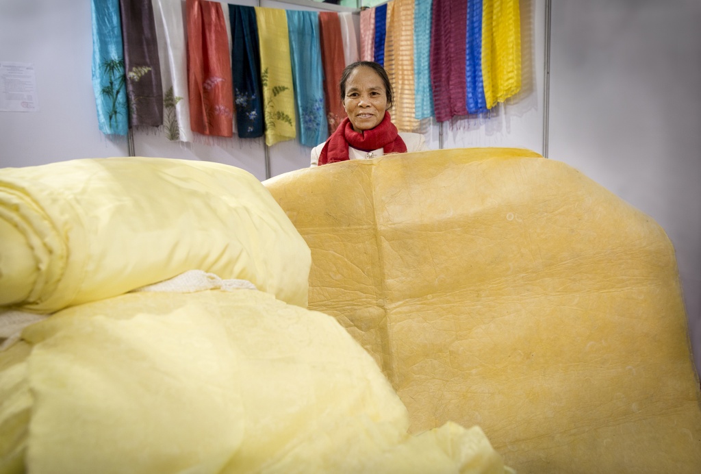 “พวกเราได้ส่งออกผ้าห่มที่หนอนไหมทอไปยังตลาดซาอุดิอาระเบีย 3 ปีแล้ว ราคาขายอยู่ที่ประมาณ 200 ดอลลาร์สหรัฐต่อผืนแล้วแต่ขนาด ซึ่งได้รับความนิยมจากลูกค้า โดยเฉพาะ ลูกค้าที่ชอบผลิตภัณฑ์ที่ทำจากวัสดุธรรมชาติเนื่องจากมีน้ำหนักเบาและเหมาะกับสภาพอากาศของที่นี่ ในร้านจัดแสดงสินค้า พวกเราก็ฉายคลิปวิดีโอเกี่ยวกับวิธีการผลิตผ้าห่มโดยหนอนไหม”