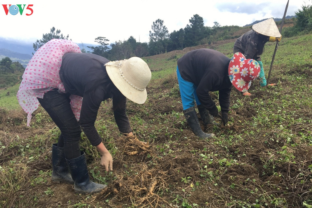 ในช่วงปลายปี สามีภรรยา คุณ อีเหียบในหมู่บ้านตือราง ตำบลหงอกลิงห์ อำเภอดั๊กเกล จังหวัดกอนตุม ได้เร่งเก็บโสมตังเซียม คุณ อีเหียบเผยว่า เมื่อเก็บโสมตังเซียมเสร็จก็สามารถขายได้หมด เมื่อปี ๒๐๑๘ ครอบครัวเธอมีรายได้เกือบ ๒๕๐ ล้านด่งจากการปลูกโสม เมื่อปี ๒๐๑๙ โสมมีราคาดีครอบครัวก็มีรายได้มากขึ้น “โสมตังเซียมขายได้ราคาดี ขายง่ายและปลูกง่ายกว่ากาแฟ เราแค่ปลูกและรอเก็บเท่านั้น พ่อค้าแม่ค้ามารับซื้อถึงที่ ปีนี้ ผลผลิตโสมตั้งเซียมดีมาก ขายได้ประมาณ ๕ ล้านด่งต่อวัน ตรุษเต๊ตปีนี้เรามีความสุขแล้ว”