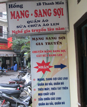 เวลา 08.00 น. ร้านซ่อมเสื้อผ้าของคุณป้า เหงียนถิห่ง ในซอย แทงเมี๊ยน กรุงฮานอยเริ่มมีลูกค้ามาอุดหนุนโดยมีทั้งที่นำเสื้อที่ชำรุดมาให้ซ่อมหรือมารับเสื้อผ้าที่ซ่อมแล้ว ที่บ้าน 2 ชั้นของคุณป้าห่ง ชั้นล่างเปิดร้านรับซ่อมแซมเสื้อผ้าโดยในพื้นที่เกือบ 20 ตารางเมตร มีเสื้อผ้าของลูกค้าที่นำมาฝากซ่อมทั้งที่วางอยู่บนพื้นและบนชั้นวางที่สูงกว่า 1 เมตร คุณป้า ห่ง ปัจจุบันอายุเกือบ 70 ปี ผมสีดอกเลา แต่เธอยังคงดูกระฉับกระเฉงว่องไว โดยได้คุยกับผู้สื่อข่าวของสถานีวิทยุเวียดนามไปพลางซ่อมไปว่า “ดิฉันประกอบอาชีพนี้มา 37 ปีแล้ว ตั้งแต่ปี 1979 ตอนที่เพิ่งมาเป็นลูกสะใภ้ แม่สามีก็สอนให้ ดิฉันเป็นคนฮานอยแท้ๆ ดังนั้นจึงถูกสอนงานบ้านงานเรือนของผู้หญิงอย่างละเอียด ดังนั้นเมื่อแม่สามีสอนวิธีการเย็บปักถักร้อยให้ ดิฉันจึงเรียนได้ง่าย คุณแม่ก็เป็นชาวฮานอย เธอถ่ายทอดอาชีพนี้ให้แก่ลูกสาวและลูกสะใภ้ ในตอนนั้น แม่สามีเป็นหนึ่งในช่างซ่อมเสื้อผ้าที่มีชื่อเสียงของกรุงฮานอย”