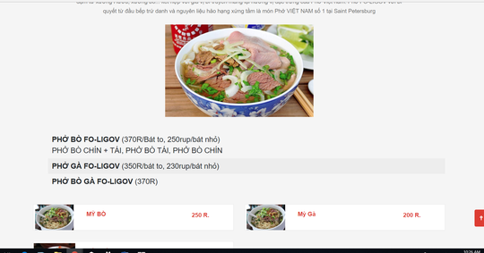 ตั้งแต่เปิดให้บริการเมื่อต้นปีนี้ ร้านเฝอ Ligov ได้กลายเป็นที่รู้จักดีของชาวเวียดนามในประเทศรัสเซียและชาวในท้องถิ่น เมื่อมาที่นี่ ลูกค้าสามารถลองทานอาหารพื้นเมืองต่างๆของเวียดนาม เช่น เฝอหรือก๋วยเตี๋ยว ปอเปี๊ยะสด ปอเปี๊ยะทอด บุ๋นจ๋าหรือขนมจีนกับหมูย่าง เป็นต้น