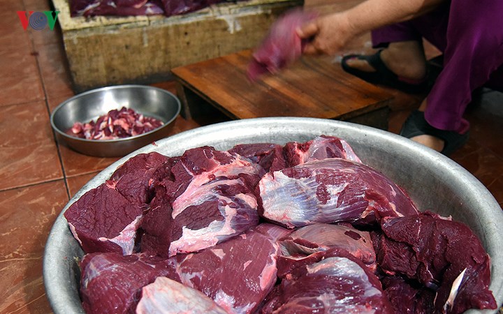 ตอนเช้าคือช่วงเวลาที่นาย อานและภรรยา ยุ่งที่สุด เพราะ เนื้อสดได้ถูกส่งมาเพื่อเตรียมทำเป็นเนื้อแดดเดียว ในการพูดคุยเกี่ยวกับเคล็ดลับในการประกอบอาชีพนี้ นาย อาน เผยว่า ขั้นตอนการเลือกเนื้อมีความสำคัญที่สุด เพราะเนื้อแดดเดียวจะอร่อยหรือไม่ก็ขึ้นอยู่กับขั้นตอนนี้ “วัว 1 ตัวมีเนื้อน่อง 2 มัดที่สามารถทำเนื้อแดดเดียวเท่านั้น ไม่สามารถใช้เนื้อส่วนอื่นได้เพราะมีเส้นเอ็นมากและกินไม่ได้ หั่นเนื้อตามลาย แล้วก่อนนำไปอบก็ต้องหมักกับเครื่องเทศที่ประกอบด้วย ขิงเพื่อดับกลิ่นสาบวัว นอกจากนี้ก็มีเกลือ น้ำตาล พริกไทย ผงชูรส น้ำปลา พริก โดยเฉพาะมะแขว่น ซึ่งจะทำให้เนื้อแดดเดียวมีรสชาติเหมือนของลาว์”