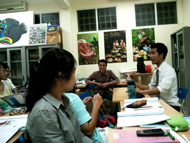 เวลา 18.25น. ซึ่งเป็นช่วงเวลาพักเบรคหลังการเรียนผันเสียงวรรณยุกต์กับอักษรตํ่า ของนักศึกษาชั้น 1TH14 มหาวิทยาลัยฮานอย รวม 23 คน โดยนักศึกษาได้ใช้เวลาพักเบรคอย่างเต็มที่ บ้างทบทวนบทเรียน บ้างก็งีบหลับหรือพูดคุยกันอย่างสนุกสนาน ถึงแม้ยังเหลือเวลาอีก 5 นาทีจึงจะถึงชั่วโมงเรียนการฟังและพูด แต่อาจารย์ อานันท์ ลากุล นิสิตฝึกประสบการณ์จากมหาวิทยาลัยมหาสารคาม ก็ได้เข้าพูดคุยกับนักศึกษา ซึ่งทำให้บรรยากาศในห้องเรียนคึกคักมากขึ้นและช่วยให้นักศึกษาหายเหนื่อยภายหลังเรียน 1 วัน