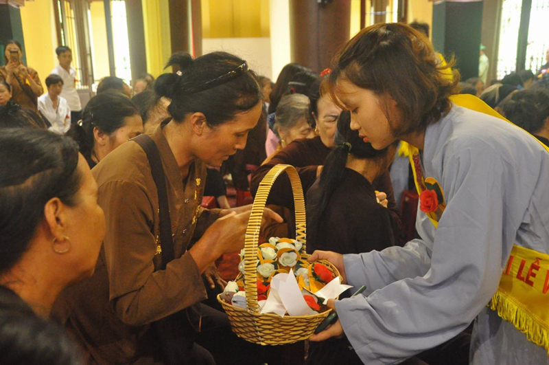 นอกจากแสดงความกตัญญูรู้คุณต่อพ่อแม่และบรรพบุรุษ การไปทำบุญที่วัดและกินเจถือเป็นอีกประเพณีวัฒนธรรมในวันขึ้น 15 ค่ำเดือน 7 ตามจันทรคติ โดยหลายครอบครัวได้เตรียมอาหารเจในถาดอาหารเซ่นไหว้บรรพบุรุษและมีหลายคนกินเจในโอกาสเทศกาลวูลาน นาง เหงวียนถิห่า อาศัยที่เขตฮายบ่าจึงในกรุงฮานอยได้เผยว่า“ ครอบครัวดิฉันนับถือศาสนาพุทธ ในวันขึ้น 15 ค่ำตามจันทรคติ ดิฉันจะทำถาดอาหารเจเซ่นไหว้บรรพบุรุษ ซึ่งสิ่งที่สำคัญคือการแสดงความจริงใจและความสำนึกในบุญคุณต่อพ่อแม่และบรรพบุรุษ”