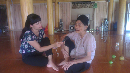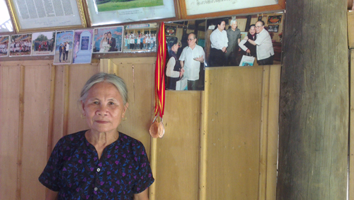 คุณป้านง ถิ่ เมอ แม้อยู่ในวัย ๙๐ ตามัว หูฟังไม่ชัดแต่ท่านยังจำช่วงเวลาที่ประธานโฮจิมินห์และเจ้าหน้าที่ปฏิวัติมาพำนักอยู่ที่เติน จ่าวได้อย่างแม่นยำ โดยในช่วงนั้น ท่านกับสตรีคนอื่นๆในหมู่บ้านได้ตำข้าวเลี้ยงทหารท่ามกลางบรรยากาศอย่างเร่งรีบอันเป็นการสนับสนุนการปฏิวัติอีกทางหนึ่ง คุณป้าเมอเล่าว่า ประธานโฮจิมินห์บอกว่า “ การตำข้าวก็เป็นการต่อสู้กับศัตรู การตำข้าวเพื่อให้ทหารกินอิ่มจึงจะสามารถชนะศัตรูได้ ” คุณป้าเมอได้รับเกียรติหุงข้าวเพื่อบริการการประชุมสมัชชาใหญ่ผู้แทนประชาชนทั่วประเทศ