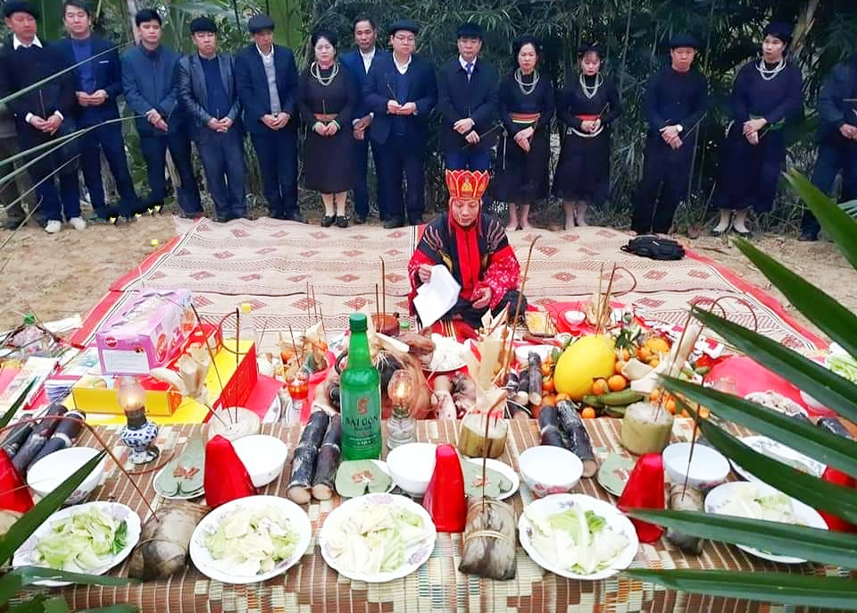 เทศกาล โหล่งโต่ง ประกอบด้วยสองส่วนคืองานพิธีและงานเทศกาล โดยงานพิธีนั้นส่วนใหญ่เป็นการถวายเครื่องสักการะแก่ฟ้าดินและเทพเจ้า เพื่อให้ลมฟ้าอากาศได้ดั่งใจ ผู้คนมีสุขภาพแข็งแรง ต้นไม้เขียวชอุ่ม และพืชผลอุดมสมบูรณ์ ซึ่งชุมชนชนกลุ่มน้อยเผ่าไตในหมู่บ้าน 9 แห่งของตำบลซวนยาง ได้ร่วมกันจัดเตรียมถาดถวายเครื่องบูชา นางหว่างถิทู และ นายหว่างวันตว่าน อาศัยอยู่ในหมู่บ้านจี่ ตำบลซงนยาง เผยว่า