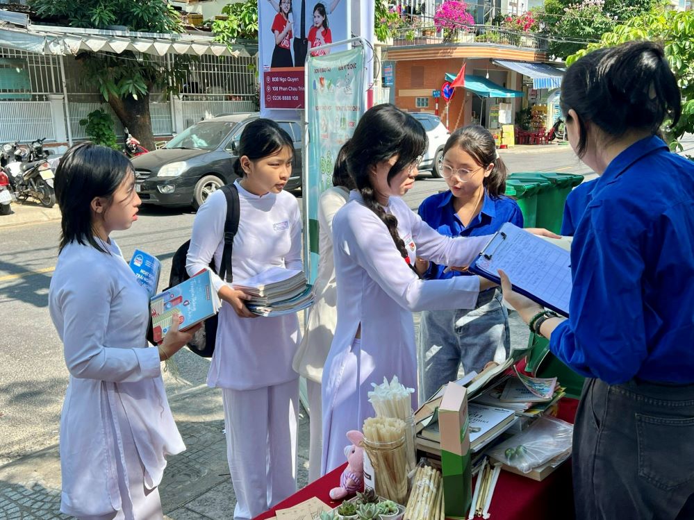 ในวันหยุดสุดสัปดาห์ นักเรียนและครอบครัวหลายครอบครัวได้นำหนังสือตำราเรียน หนังสือการ์ตูนและสมุดที่ยังใช้ได้ในปีการศึกษาที่ผ่านมามาแลกกับต้นไม้ของกลุ่มผู้ที่มีใจกุศล Fly to sky ที่พื้นที่สำหรับเด็ก หรือ หญ่าเที๊ยวญี ในเขต 10 นครโฮจิมินห์ นอกจากหนังสือเก่าแล้ว กลุ่ม Fly to Sky ยังรับแลกกับของเล่นเก่า แบตเตอรี่เก่า กล่องนมและผลิตภัณฑ์พลาสติกที่ใช้แล้วด้วย