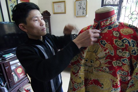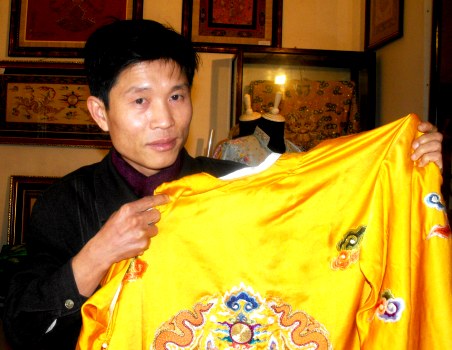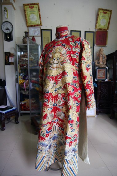 ( VOVworld )- ที่พิพิธภัณฑ์วัตุโบราณของราชสำนักเว้ได้จัดแสดงเสื้อครุยในราชสำนักราชวงศ์เหงวียนหลายชุด ซึ่งเป็นผลงานด้านศิลปะเพราะมีการเย็บ ปักและการแกะสลักด้วยเงินและทองอย่างประณีตสวยงาม และผู้ที่ถือว่าเป็นฝีมือเอกของเวียดนามในการสเกตช์เสื้อครุยฯชุดเหล่านี้คือ ช่างศิลป์ปักมือหนึ่งของเวียดนาม นายหวู วัน หย่อย ที่อาศัยที่หมู่บ้านดง กื๋อ อำเภอ เถื่องติ๊น กรุงฮานอย