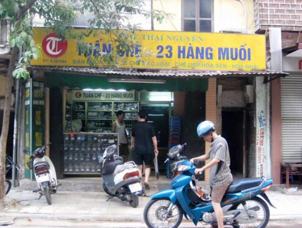 ร้านชาเล็กๆประมาณ ๑๕ ตารางเมตรของนายหวูแองต๊วนเลขที่ ๒๓ ถนนห่างม้วย อยู่ในย่านเก่าแก่คือย่านถนน ๓๖ สายของกรุงฮานอยและอยู่ห่างจากทะเลสาบโห่เกือมหรือทะเลสาบคืนดาบ ประมาณ ๑๐ นาที ภายในร้านมีตู้กระจกซึ่งแบ่งเป็นชั้นๆจัดวางชาชนิดต่างๆโดยเฉพาะซองชากลิ่นดอกบัวที่ถูกจัดวางอย่างประณีต เนื่องจากเป็นร้านเล็กและไม่มีการตบแต่งเรียกความสนใจจากลูกค้า ดังนั้นลูกค้าบางคนอาจหาไม่เจอหรือเดินเลยไปแล้วต้องเดินย้อนกลับ คุณเหงวียนถิ่มาย ลูกค้าประจำของร้านบอกกับพวกเราว่า“ พ่อและแม่ของดิฉันถือเป็นคอชาแต่ต้องเป็นชากลิ่นดอกบัวของที่นี่ ดิฉันซื้อชาที่นี่ได้ประมาณ ๑๐ ปีแล้ว ชาที่นี่มีรสพิเศษโดยเมื่อเริ่มดื่มจะมีรสขมนิดหน่อยต่อมามีรสหวาน น้ำชามีสีเหลืองอ่อนของน้ำผึ้ง และเมื่อชงดื่มถึงครั้งที่สามชาก็ยังมีกลิ่นหอมอยู่ ดิฉันต้องไปทำงานในต่างประเทศเป็นประจำจึงซื้อชากลิ่นดอกบัวเป็นของฝากให้แก่บรรดาหุ้นส่วนและพวกเขาชอบมาก ”