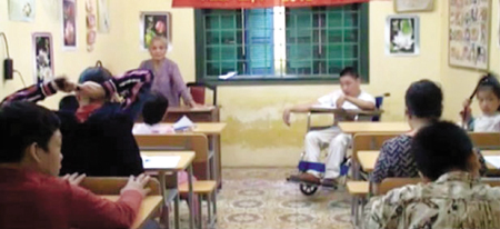 (VOVworld)- ณ โรงเรียนมัธยมต้น อานเยือง แขวงเอียนฝุ เขตเตยโห่กรุงฮานอยมีการเปิดชั้นเรียนพิเศษมากว่า15ปีแล้ว ซึ่งนี่ไม่เหมือนชั้นเรียนทั่วไปเพราะนักเรียนที่เข้าร่วมนั้นมีอายุตั้งแต่6-30ปีและล้วนเป็นคนพิการส่วนครูผู้สอนนั้นมีอายุมากถึง80ปี
